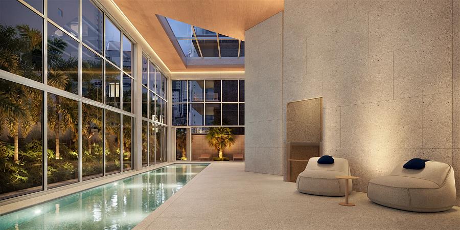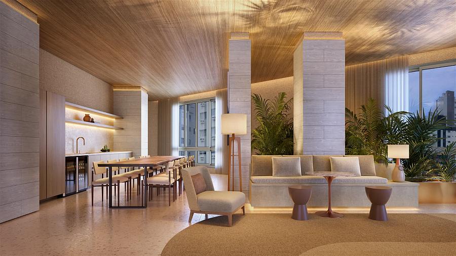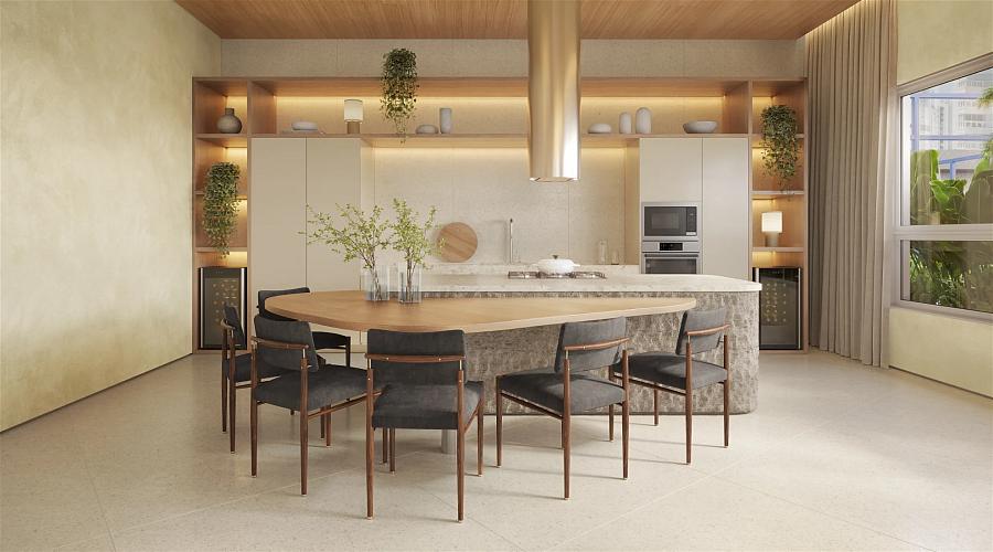 Os apartamentos Tipo do Alaia possuem 182m², 4 suítes sendo 1 máster, sacada com churrasqueira à carvão, amplo living com sala de estar, sala de jantar e cozinha americana, área de serviço e 3 vagas de garagem.