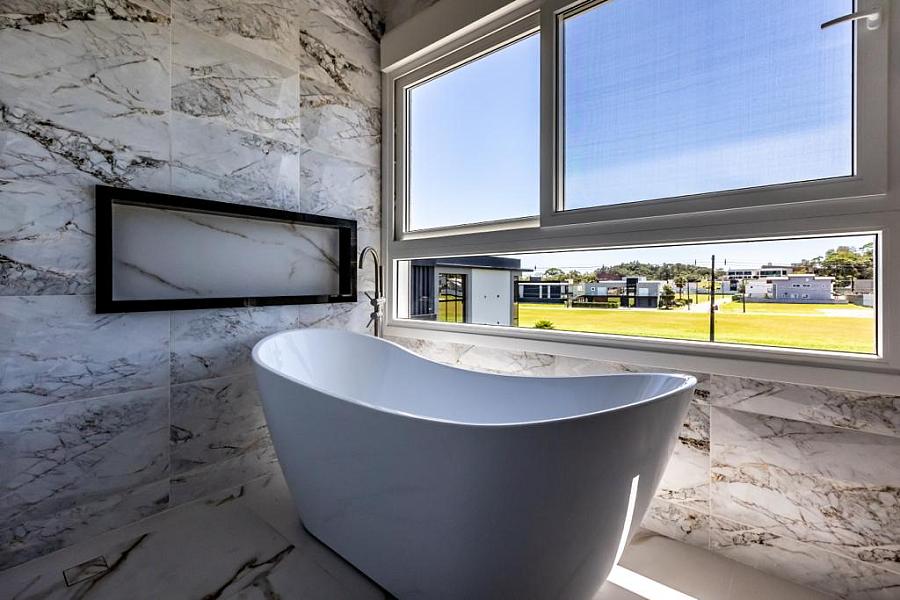 • Muros revestidos com porcelanato 0,60 x 1,20 e 1,20 x 1,20