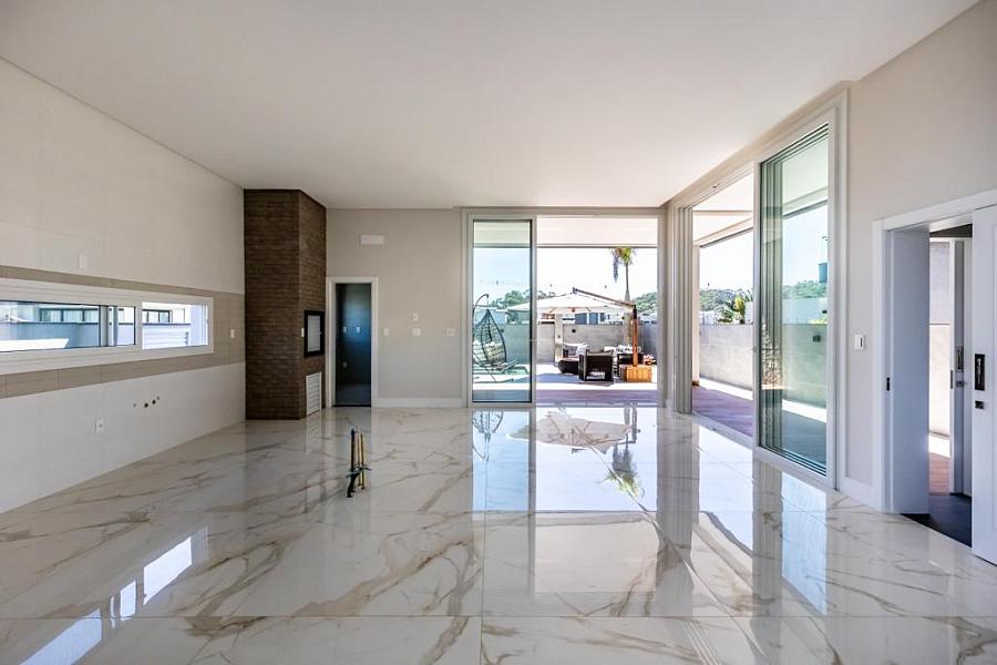 • Sala e cozinha com 100m² e com porcelanato no chão e parede de 1,20 x 1,20